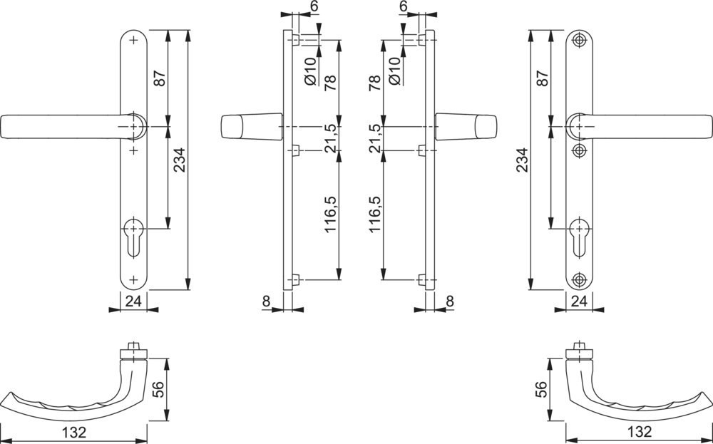Schmalschild-Grt. (beids. Lochteile für HOPPE-Schnellstift) / F8707 (8077)