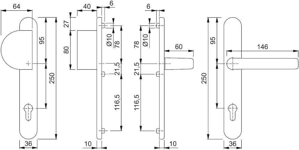 • HOPPE-Aluminium-Profiltür-Langschild-Garnitur