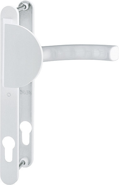 Schmalschild-WechselgarniturGarnitur HOPPE-Schnellstift / rechts / F9016 verkehrsweiß / 8x85 mm / Profilzylinder 92 mm / 67-72 mm / HOPPE-Logo
