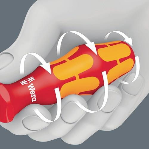 Wera VDE-Schraubendreher mit mehrkomponentigem Kraftform Plus Griff für schnelles und schonendes Arbeiten: Harte Griffzonen für hohe Arbeitsgeschwindigkeit · während weiche Griffzonen hohe Drehmomentübertragung garantieren. Stückprüfung bei 10.000 V für sicheres Arbeiten bei der zugelassenen Spannung von 1.000 V. Die Spitze von Wera Lasertip-Schraubendrehern wird mit Laserstrahlen mikroskopisch fein aufgeraut. Diese raue Oberfläche ″beißt″ sich förmlich im Schraubenkopf fest. Das unbeabsichtigte Herausrutschen gehört der Vergangenheit an. ″Take it easy″ Werkzeugfinder mit Farbkennzeichnung nach Profilen und Größenstempelung - zum einfachen und schnellen Finden des benötigten Werkzeugs. Der Sechskantabrollschutz verhindert lästiges Wegrollen am Arbeitsplatz. Weitere technische Eigenschaften: · Kennzeichnung: ja · Abrollschutz: ja · Grifflänge: 112mm · Klingenbreite (in Zoll): 5/16"Zoll · Klingenlänge (in Zoll): 8"Zoll · Kraftform Griff: ja · Take it Easy Kraftform Schraubendreher: ja