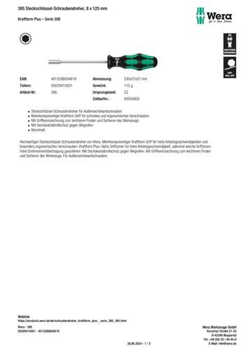 Schraubendreher 395 Außen-6-kant SW8mm K