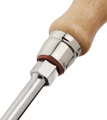 mit Holzgriff · durchgehende Klinge aus vergütetem Spezialstahl mit Schlüsselhilfe · glanzverchromt · mit Lederkappe · Schneide brüniert für Schlitzschrauben Weitere technische Eigenschaften: · Material: hochvergüteter Spezialstahl