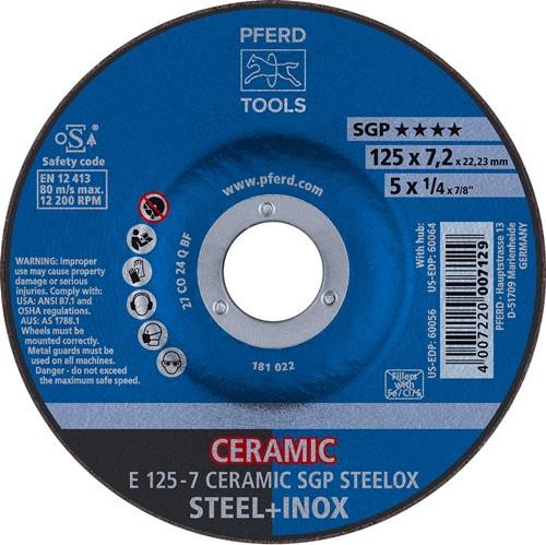 Schruppscheibe CERAMIC SGP STEELOX D125xS7mm gekr.STA Bohr.22,23mm PFERD