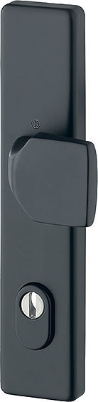 Schutz-Knopflangschild mit ZylinderabdeckungHalbgarnitur, Außenseite / für Kombi-Schutz / F9714M schwarz matt / 10 mm / Profilzylinder 92 mm / 67-72 mm / HOPPE-Logo / für ES1 (SK2)
