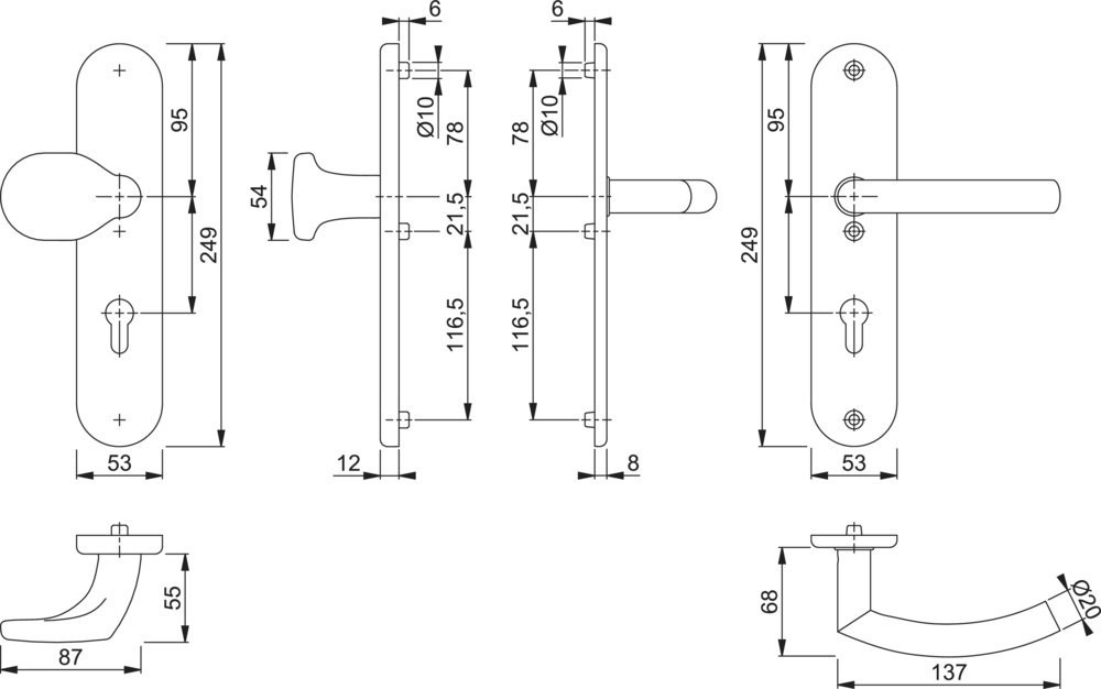 Schutz-Langschild-WechselgarniturGarnitur / ES0 (SK1) / F69 Edelstahl matt / 8 mm / Profilzylinder 72 mm / 37-42 mm / HOPPE-Logo