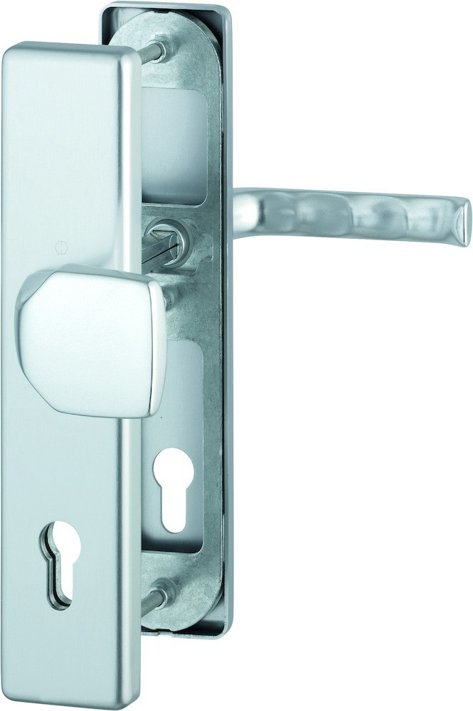 Schutz-Langschild-WechselgarniturGarnitur / ES1 / F1 Aluminium silberfarben / 10 mm / Profilzylinder 92 mm / 67-72 mm / HOPPE-Logo