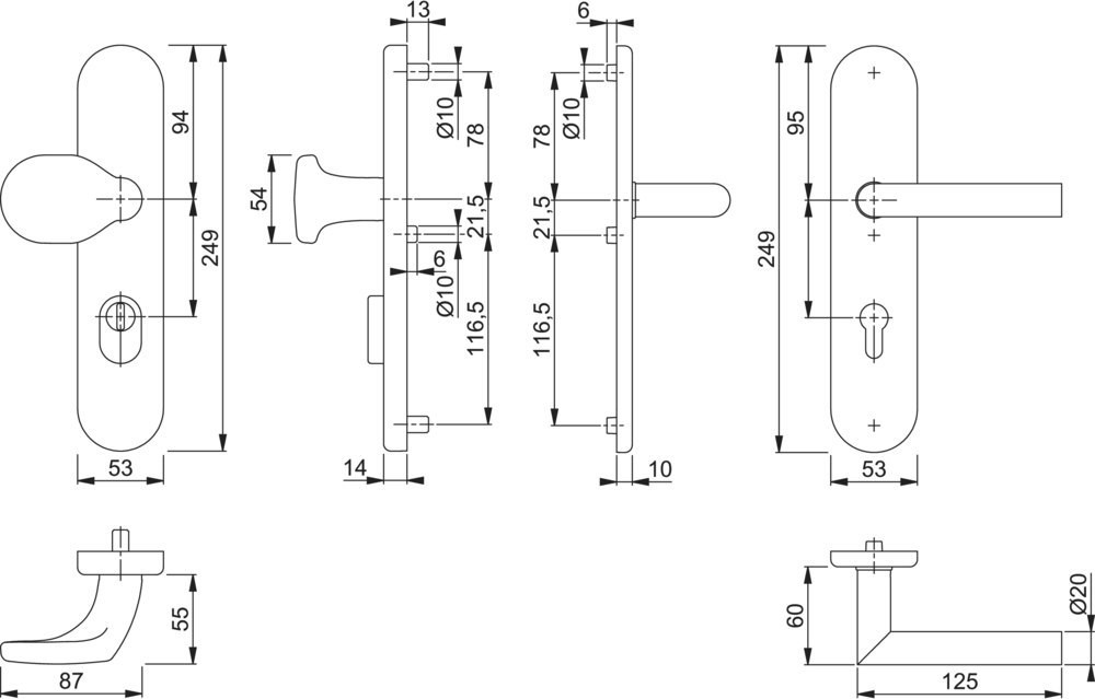 | Durchmesser Türgriff (innen) | 20 mm |