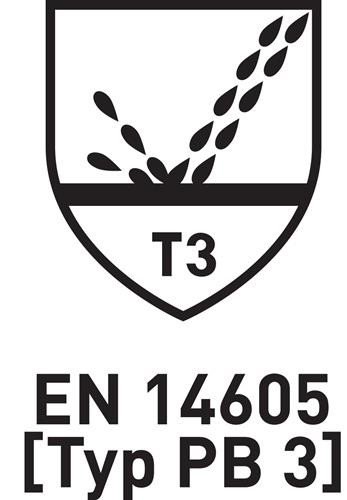 Kat. III / Typ 3 (3B) + 4 (4B) + 5 (5B) + 6 (6B), EN 14605+A1, EN ISO 13982-1, EN 13034, EN 1073-2, EN 14126, EN 1149-5 · hoher Tragekomfort · mit 3-teiliger Kapuze mit Gummizug · Arm-, Bein-, Taillengummi · abgeklebte Nähte · doppelt verklebbare Reißverschlussabdeckung · abklebbare Kinnabdeckung · dichter Maskenabschluss · Daumenschlaufe · Anwendungsbereiche: Umgang mit Agrarchemikalien, Bioengineering, chemische Industrie, Zivilschutz, Rückbau von Produktionsanlagen, Dekontamination verseuchter Böden, Seuchen und Katastrophenschutz, Gefahrstoffentsorgung, Rettungsteameinsätze, Aufräumarbeiten nach Unfällen mit Chemikalien, Feuerwehren, Industriereinigungen und –wartung, medizinische Anwendungen und Exposition gegenüber biologischen Gefahrstoffen, militärische Anwendungen, Arbeiten mit Öl, Reinigung von Öltankern, pharmazeutische Industrie, Tankreinigung, -inspektion und –wartung, Nuklearindustrie