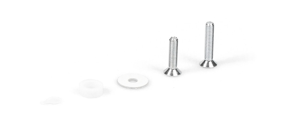 6 Stück Schrauben, zur Befestigung des Zusatzprofils durch eine Glasscheibe am Laufprofil, inklusive Glas-Durchführungshülsen. Bis Laufprofillänge 2.050 mm..