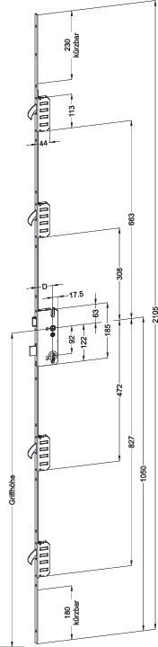 WINKHAUS Mehrfachverriegelung hookLock F1660 L03 M4; Produkttyp: Mehrfachverriegelung; Produkttyp (Hersteller): Mehrfachverriegelung; Ausführung: Schlüsselbetätigt; Verriegelung: über Schließzylinder,über Schließzylinder; Entriegelung: über Schließzylinder,über Schließzylinder; Verriegelungsart (Zusatzverriegelung): Schwenkriegel; Drückernuss: einteilig; Anzahl Verriegelungen: 5 St.; Tagesfallenfunktion: Nein; Stulpform: Flachstulp; Material Stulp: Stahl; Schlossriegel: 2 tourig; Riegeleigenschaft: Standard; Schlosskasten: geschlossen; Schlosskastenhöhe: 185 mm; Wechsel: mit Wechsel; Material Zusatzriegel: Stahl; Norm: DIN 18251; Schlossklasse: Klasse 3; Türart: Objekttür; Türflügelanzahl: ein- und zweiflügelig; Türwerkstoff: Aluminium,Holz,Kunststoff; Türvariante: standard; Maßvariante/Typ: M4; Dornmaß: 65 mm; Hinterdornmaß: 17,5 mm; Drückernussvierkant: 10 mm; Entfernung: 92 mm; Lochung: Profilzylinder gelocht; DIN-Richtung: DIN Rechts; Stulpausführung: kantig; Stulpbreite: 16 mm; Stulplänge: 2.105 mm; Stulpstärke: 3 mm; Farbton Stulp: silber; Material Falle: Zinkdruckguss; Riegelausschluss: 20 mm; Einbautiefe Hauptschlosskasten: 79,5 mm; Oberfläche Stulp: matt verchromt; Zertifikate: SKG2*; Flügelfalzhöhe min.: 1.875 mm; Flügelfalzhöhe max.: 2.230 mm; Drückerhöhe: 1.050 mm; Stulp kürzbar oben: 230 mm; Stulp kürzbar unten: 180 mm