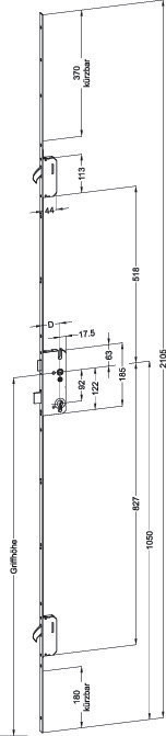 WINKHAUS Mehrfachverriegelung hookLock F2062 L03 M2; Produkttyp: Mehrfachverriegelung; Produkttyp (Hersteller): Mehrfachverriegelung; Ausführung: Schlüsselbetätigt; Verriegelung: über Schließzylinder,über Schließzylinder; Entriegelung: über Schließzylinder,über Schließzylinder; Verriegelungsart (Zusatzverriegelung): Schwenkriegel; Drückernuss: einteilig; Anzahl Verriegelungen: 3 St.; Tagesfallenfunktion: Nein; Stulpform: Flachstulp; Material Stulp: Stahl; Schlossriegel: 2 tourig; Riegeleigenschaft: Standard; Schlosskasten: geschlossen; Schlosskastenhöhe: 185 mm; Wechsel: mit Wechsel; Material Zusatzriegel: Stahl; Norm: DIN 18251; Schlossklasse: Klasse 3; Türart: Objekttür,Objekttür; Türflügelanzahl: ein- und zweiflügelig; Türwerkstoff: Aluminium,Holz,Kunststoff; Türvariante: niedrig; Maßvariante/Typ: M2; Dornmaß: 45 mm; Hinterdornmaß: 17,5 mm; Drückernussvierkant: 8 mm; Entfernung: 92 mm; Lochung: Profilzylinder gelocht; DIN-Richtung: DIN Links-Rechts; Stulpausführung: kantig; Stulpbreite: 20 mm; Stulplänge: 2.105 mm; Stulpstärke: 3 mm; Farbton Stulp: silber; Material Falle: Zinkdruckguss; Riegelausschluss: 20 mm; Einbautiefe Hauptschlosskasten: 59,5 mm; Oberfläche Stulp: matt verchromt; Zertifikate: SKG2*; Flügelfalzhöhe min.: 1.735 mm; Flügelfalzhöhe max.: 1.875 mm; Drückerhöhe: 1.050 mm; Stulp kürzbar oben: 370 mm; Stulp kürzbar unten: 180 mm