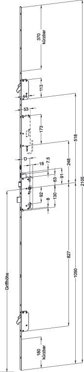 WINKHAUS Mehrfachverriegelung autoLock; Produkttyp: Mehrfachverriegelung; Produkttyp (Hersteller): Selbstverriegelndes Mehrpunkt-Panikschloss; Ausführung: Automatik (SV),Schlüsselbetätigt; Verriegelung: magnetisch,magnetisch; Entriegelung: über Schließzylinder oder Türgriff,über Schließzylinder oder Türgriff; Verriegelungsart (Zusatzverriegelung): Schwenkriegel; Drückernuss: einteilig; Anzahl Verriegelungen: 3 St.; Tagesfallenfunktion: Nein; Stulpform: Flachstulp; Material Stulp: Stahl; Schlossriegel: 1 tourig; Riegeleigenschaft: Standard; Schlosskasten: geschlossen; Schlosskastenhöhe: 185 mm; Wechsel: mit Wechsel; Material Zusatzriegel: Stahl; Norm: DIN 18251; Schlossklasse: Klasse 3; Türart: Objekttür; Türflügelanzahl: ein- und zweiflügelig; Türwerkstoff: Holz,Kunststoff,Aluminium; Türvariante: niedrig; Maßvariante/Typ: M2; Dornmaß: 45 mm; Hinterdornmaß: 18 mm; Drückernussvierkant: 8 mm; Entfernung: 92 mm; Lochung: Profilzylinder gelocht; DIN-Richtung: DIN Links; Stulpausführung: kantig; Stulpbreite: 20 mm; Stulplänge: 2.105 mm; Stulpstärke: 3 mm; Farbton Stulp: silber; Material Falle: Zinkdruckguss; Ausführung Falle: mit angeschrägter Falle; Riegelausschluss: 20 mm; Einbautiefe Hauptschlosskasten: 60 mm; Oberfläche Stulp: matt verchromt; Zertifikate: SKG2*,VdS B; Flügelfalzhöhe min.: 1.735 mm; Flügelfalzhöhe max.: 1.875 mm; Drückerhöhe: 1.050 mm; Stulp kürzbar oben: 370 mm; Stulp kürzbar unten: 180 mm