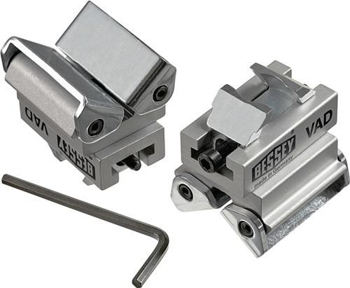 Anpassung speziell an runde · ovale und winkelige Werkstücke. Stufenlose Winkelanpassung von 60° innen bis 60° außen. Passend für Original BESSEY Temperguss-Schraubzwingen TG sowie Ganzstahl-Schraubzwingen GZ und GMZ ab 100 mm Ausladung.