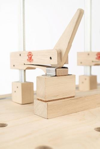 variables Spannsystem für Systemwerkbänke mit 20 mm Bohrung und Profilschiene · mit dem Bohrungsadapter lassen sich zwei Spannelemente verbinden und so die Spannweite erhöhen