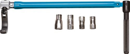 für Einhebelmischbatterien und Standhähne mit zentraler Verschraubung · mit 13 mm Sechskantantrieb und zusätzlichen Einsätzen für 9, 10, 11 und 14 mm · schwenkbare Klaue für Rechts- und Linksgang