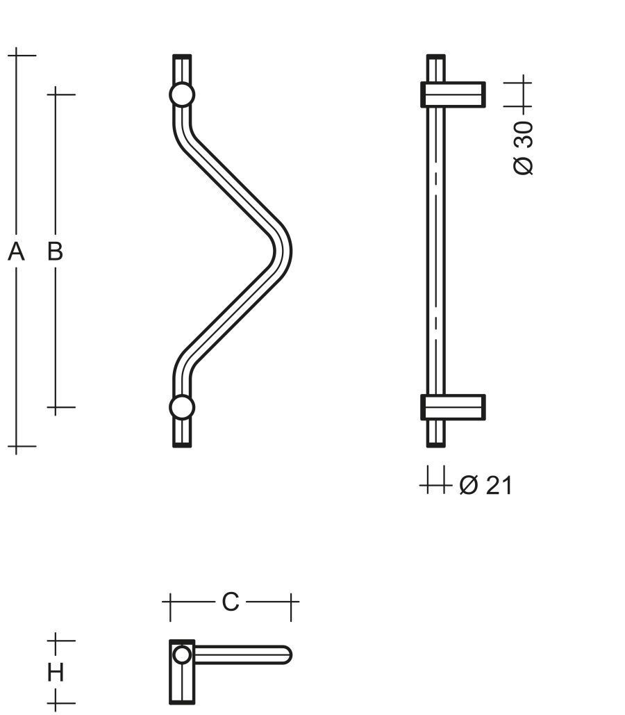 Stangengriff Dreiecksf. ES 21.400.5 sw Edelstahl feinmatt poliert Dm. 21 mm