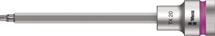 12,5 mm (1/2 ″)-Vierkantantrieb · mit Haltefunktion und Farbleitsystem · legierter Werkzeugstahl - matt verchromt · für Schrauben mit Innen-TORX®-Profil Weitere technische Eigenschaften: · Material: legierter Werkzeugstahl