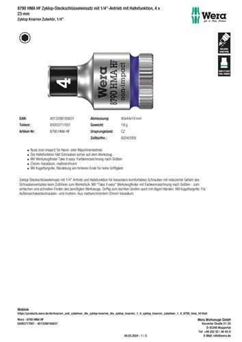 6,3 mm (1/4 ″)-Vierkantantrieb · 6-kant mit Haltefunktion und Farbleitsystem · aus legiertem Werkzeugstahl · matt verchromt Weitere technische Eigenschaften: · Material: legierter Werkzeugstahl