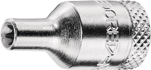 6,3 mm (1/4 ″)-Vierkantantrieb · für Schrauben mit Außen-TORX®-Profil · Vanadiumstahl · verchromt · gerändelt · DIN 3120 / ISO 1174 Weitere technische Eigenschaften: · Material: Vanadiumstahl