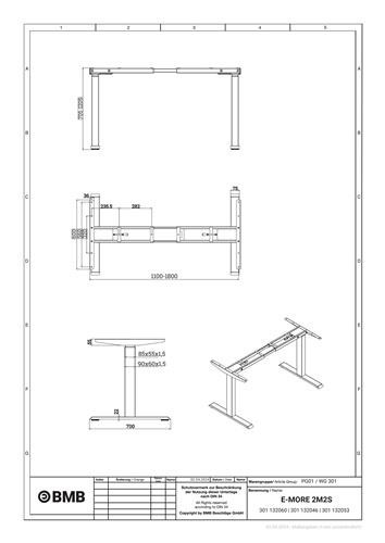 Steh-Sitz Tischgestell E-MORE 2M2S weiß RAL 9010 H.700-1200mm BMB
