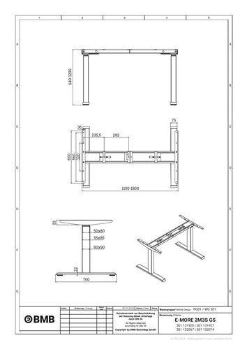 Steh-Sitz Tischgestell E-MORE 2M3S GS weiß RAL 9010 H.640-1290mm BMB