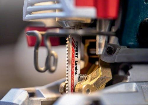 hohe Lebensdauer bei sauberen Schnitten in Laminat, abrasiven Materialien wie faserverstärkten Vinylböden und Hochdruck-Schichtpressstoffplatten · extrafeinen Zähne schneiden glatt in dünnes Material · entgegengerichtete Zahnreihen sorgen für sauberen Schnitt auf beiden Seiten · passend für alle T-Schaft-Stichsägen