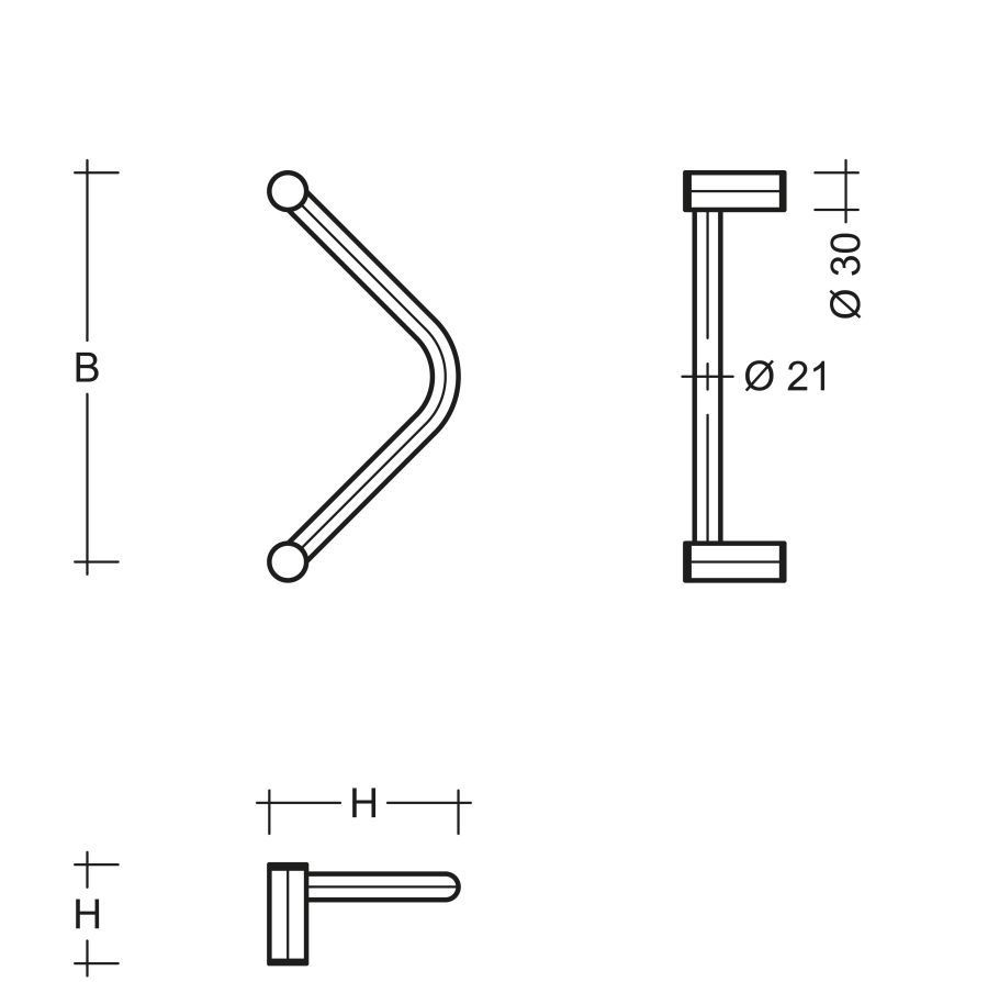 Stoßgriff Dreiecksf. ES 21.300.4 gkw Edelstahl feinmatt poliert Dm. 21 mm