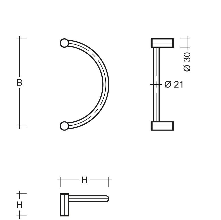 Stoßgriff Halbkreisf. ES 21.350.4 ks Edelstahl feinmatt poliert Dm. 21 mm