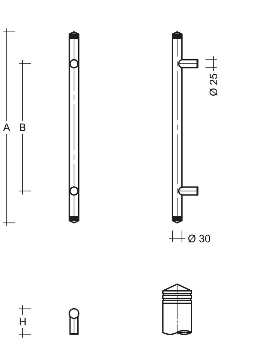 Stoßgriff gerade ES 30.1.4 s Dm. 30 mm Länge 350 mm Befestigungsabst. 250 mm