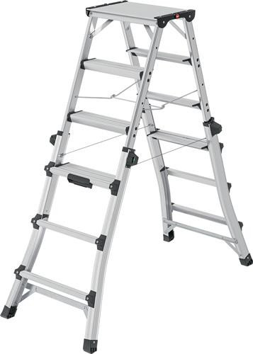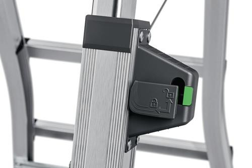 Aluminium · teleskopierbare Stufenstehleiter für flexible Arbeitshöhen · Steig- und Stützholme auf 2 x 4, 2 x 5 oder 2 x 6 Stufen einstellbar · beidseitig begehbar · Stufen-/Sprossen-Kombination mit rutschsicherer, geriffelter Auftrittsfläche · treppengängig einsetzbar, max. Treppenverstellung 430 mm · platzsparend · max. Gesamtbelastung 150 kg · Einfaches und sicheres Handling der Höhenverstellung durch Sicherheits-Verriegelungssystem mit Lock/Unlock-Indikator Weitere technische Eigenschaften: · Stufenabstand: 220mm · senkrechte Leiterhöhe: 870-1310mm · Oberfläche: eloxiert · Standhöhe: 440-870mm · Stufentiefe: 130mm · Ausladung: 900-1240mm · prüfpflichtig: ja