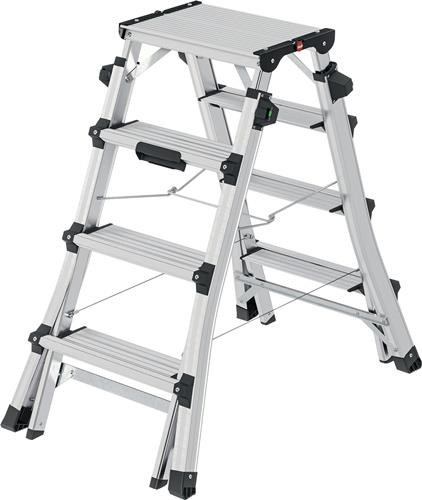 Stufenstehleiter D100TL Alu.Stufen 2x4-2x6 Gesamt-H.981-1430mm teleskopier.HAILO