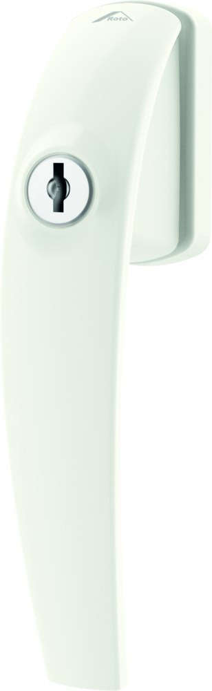 Roto Fenstergriff Roto Swing; Produkttyp: Fenstergriff; Produkttyp (Hersteller): Fenstergriff; Ausführung: abschließbar; Rastung: 90°; Stütznocken: mit Stütznocken; Verriegelungsart: mit Druckzylinder; Material: Aluminium; Montageart: aufliegend; Befestigungsart: verdeckt verschraubt; Anwendung: innen; Drehmoment-Widerstand: 100 N·m; Anzahl Schlüssel: 1 St.; Länge: 119 mm; Befestigungsabstand: 43 mm; Form Rosette: eckig,abgerundet; Breite Rosette: 32 mm; Höhe Rosette: 62 mm; Stärke Rosette: 12,7 mm; Durchmesser Stütznocken: 9,7 mm; Norm: DIN EN 13126-3; Einsatzbereich: Drehkipp; Fensterwerkstoff: Aluminium,Kunststoff,Holz; Vierkant: 7 mm; Stift vorstehend: 43 mm; Zubehör: mit Schrauben; Schraubengröße: M5x50; DIN-Richtung: DIN Links-Rechts; Farbe: weiß; Farbe (RAL): RAL 9016; Farbton: verkehrsweiß; Oberfläche: pulverbeschichtet; Aufdruck: mit Logo; Schließung: gleichschließend