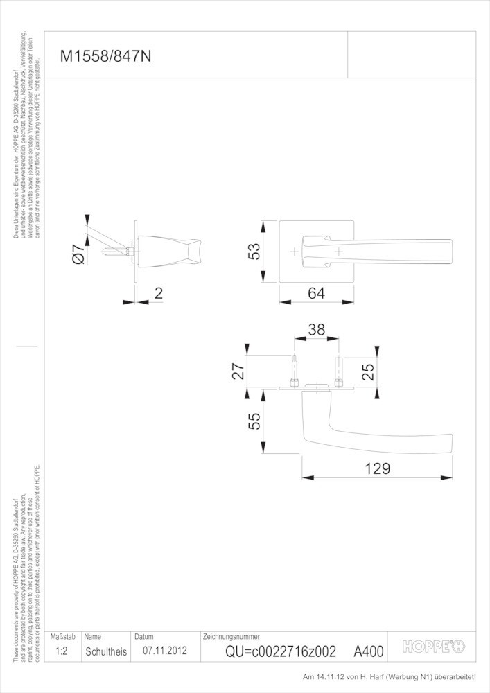 | Höhe Drückerrosette (außen) | 2 MMT |