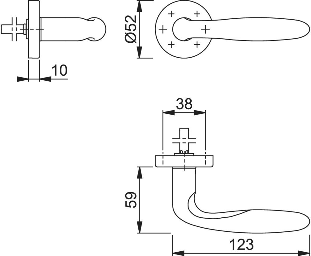 | Höhe Drückerrosette (innen) | 10 MMT |