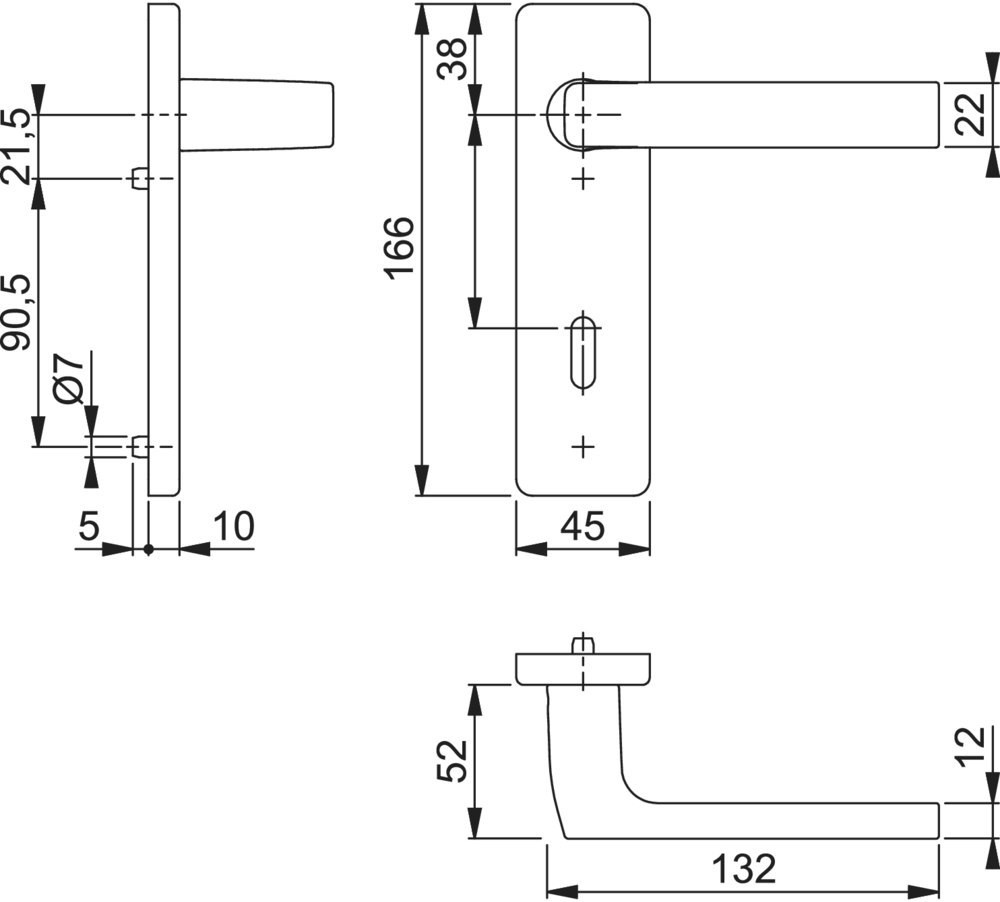 | Breite Türgriff (außen) | 22 mm |