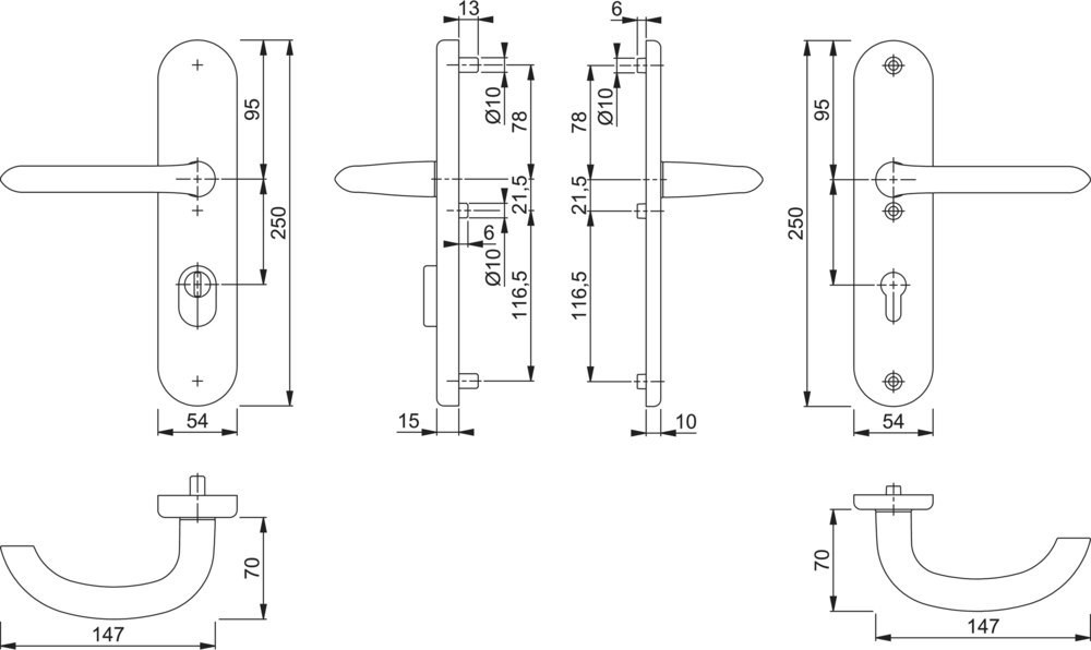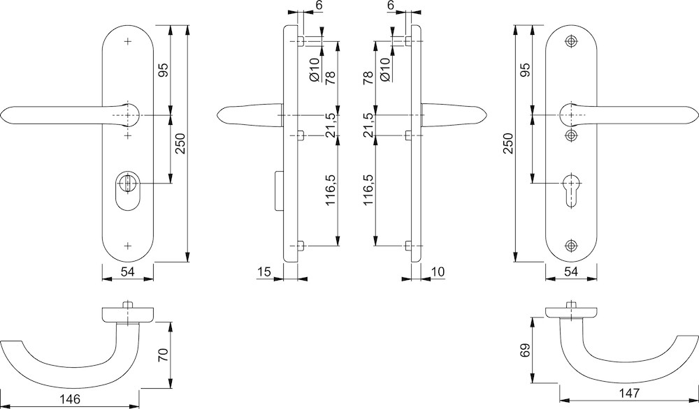 Türgriffgarnitur Marseille ES1 3664179 F1 Aluminium natur 1138/3332ZA/3410
