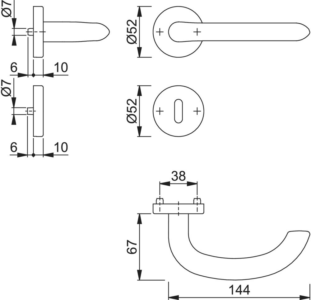 | Höhe Schlüsselrosette (außen) | 10 MMT |