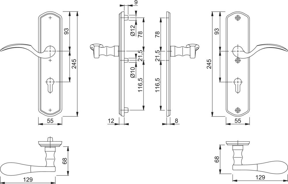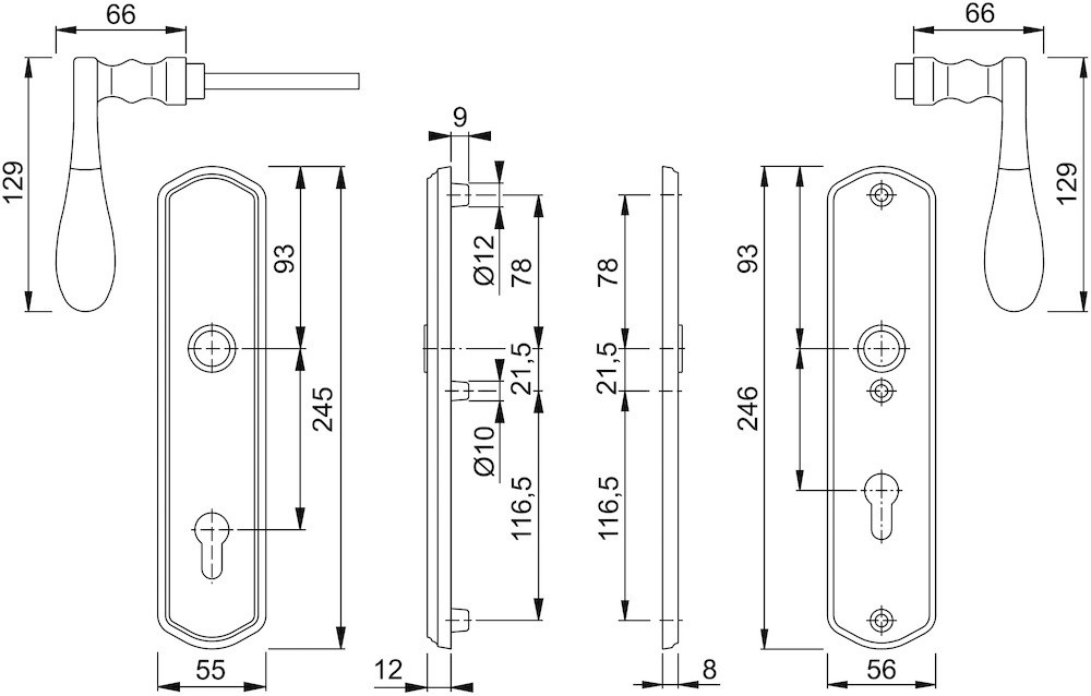 Türgriffgarnitur München links 6905426 F77-R Messing poliert Resista 72 mm PZ