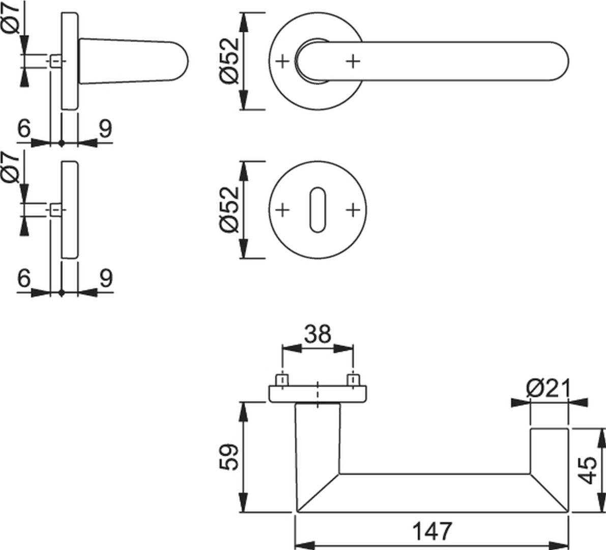 Türgriffgarnitur Rotterdam OB 3608839 F1 Aluminium natur 1401/42KV/42KVS