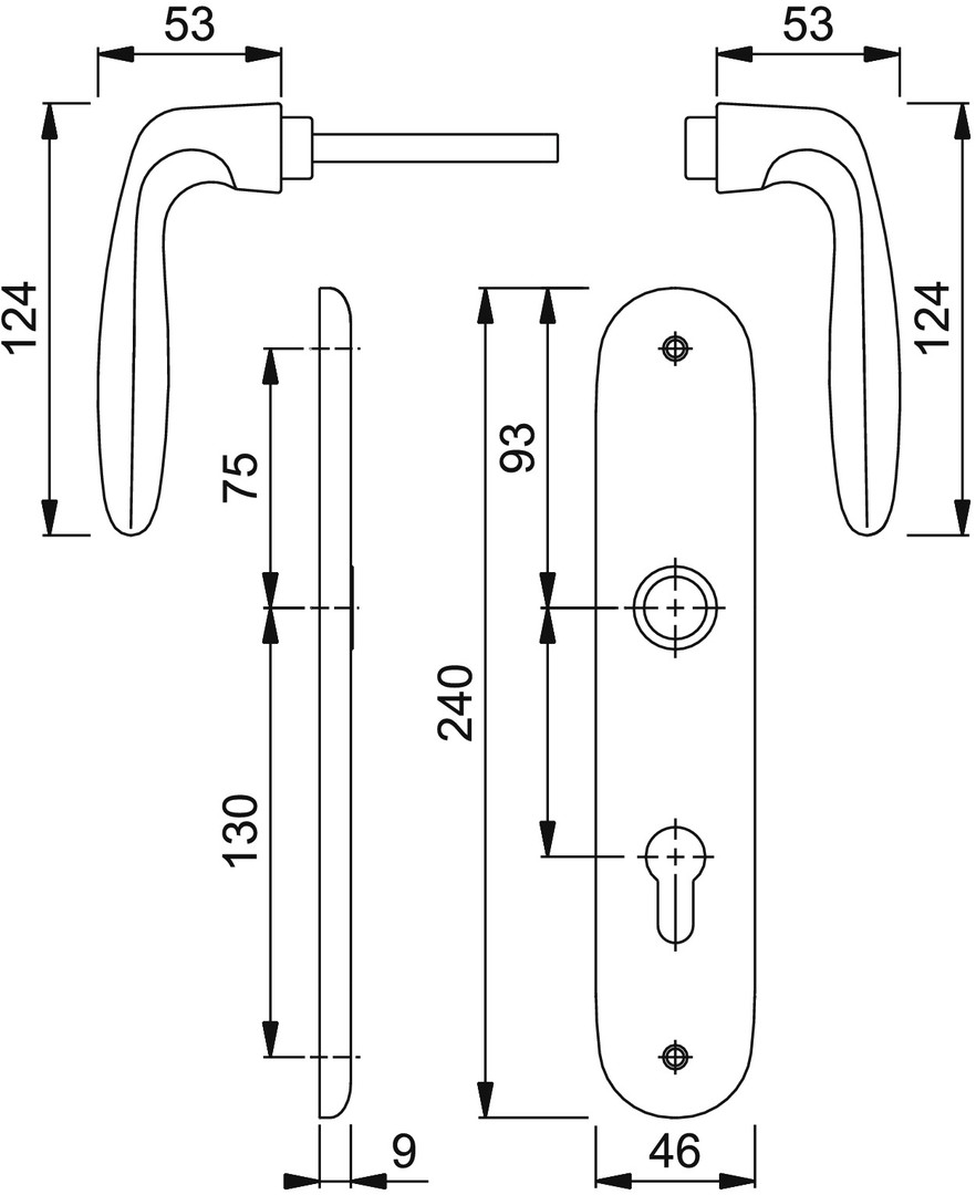 Türgriffgarnitur Verona 2963003 F9 Aluminium stahl 72 mm PZ 1510/273P