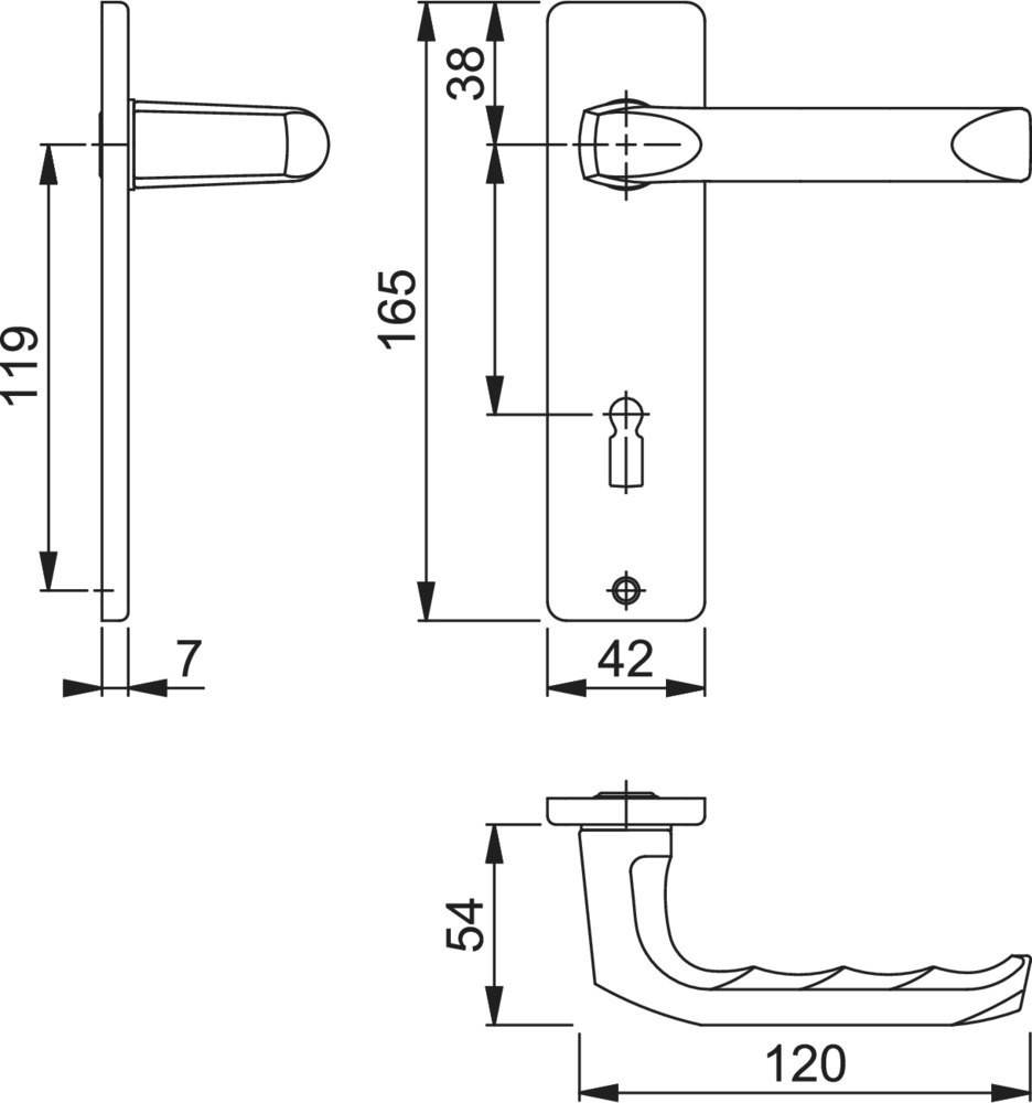 Garnitur / F1 Aluminium silberfarben / 8 mm / Buntbart 72 mm / 37-47 mm / HOPPE-Logo