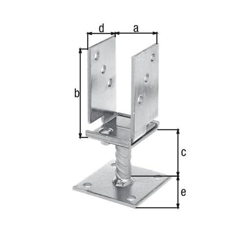 Ausführung: breitenverstellbar · geeignet für Holzpfostenstärken von 71 bis 131 mm · Material: Stahl roh, Oberfläche: galvanisch verzinkt, dickschichtpassiviert · Aufgrund von Umstellungen bei der Oberfläche, kann dieser Artikel in unterschiedlichen Ausführungen (gelb-verzinkt, sendzimirverzinkt oder verzinkt-dickschichtpassiviert geliefert werden Weitere technische Eigenschaften: · Material: Stahl roh · Maß a: 71 - 131mm · Maß b: 110mm · Maß c: 70mm · Oberfläche: galvanisch verzinkt, dickschichtpassiviert · Maß d: 100mm