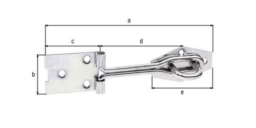 mit Schlaufe aus gerolltem Draht für Vorhängeschlösser geeignet, max. Größe s. Tabelle · Material: Stahl, Oberfläche: galvanisch gelb verzinkt Weitere technische Eigenschaften: · Maß a: 140mm · Maß b: 36mm · Maß c: 45mm · Maß d: 58mm