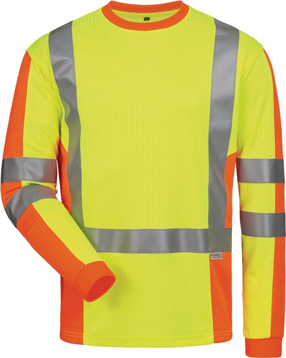 EN 20471 Kl. 2 , EN 13758-2, EN ISO 13688 · Material: 75% Polyester / 25% Baumwolle Interlock, ca. 185g/m² · Material ist besonders angenehm zu tragen, atmungsaktiv und feuchtigkeitsregulierend · Reflexstreifen aus 3M™ Scotchlite™ Reflexmaterial · Kontrasteinsätze vorne · wichtiger UV-Schutz für die Sommermonate mit einem UV Schutzfaktor UPF 40+ · Halsbündchen farblich mit Kontrastmaterial abgestimmt · Rundhalsausschnitt