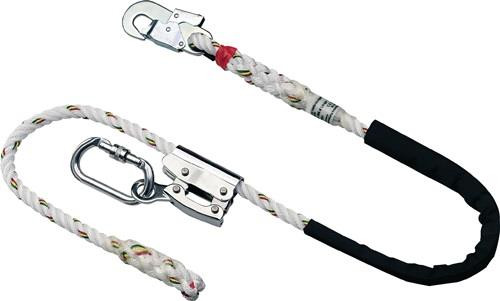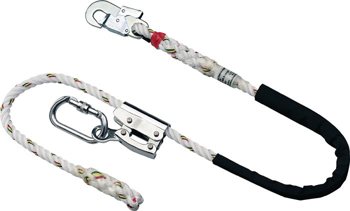 EN 358 · 16-mm-Ø-Polyamidseil · einstellbares Verbindungsmittel für Haltegurte zur Arbeitsplatzpositionierung und Arbeitsplatzstabilisierung bei Arbeiten an Gerüsten, Masten oder Bäumen · Verstellung erfolgt mittels einer Seilklemme, die bequem mit einer Hand bedient werden kann Weitere technische Eigenschaften: · Anwendung: Verbindungsmittel einstellbar · prüfpflichtig: ja