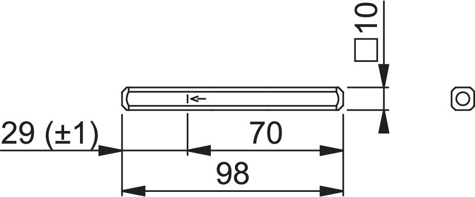 Vierkant-Vollstift R2 10 mm / 98 mm / für 70 mm vorst.