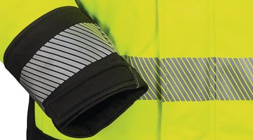 EN ISO 20471 Kl. 3 · EN ISO 13688 · Obermaterial: 100% Polyester, 3-Lagenlaminat (Softshell), Futter: 100% Polyester · Atmungsaktivität: 1000 g/m²/24 h · Wassersäule: 5000 mm · Futter: 100% Polyester · Softshell-Material ist wind- und wasserdicht, sowie atmungsaktiv durch 3-Lagenlaminat · robuster YKK®-Front-Reißverschluss mit Patte · hoch abriebfestes, robustes Softshellmaterial · thermofixierte Reflexstreifen, dadurch keine zusätzlichen Nähte · herausnehmbares, wärmendes Stepp-Innenfutter mit Strickbündchen an den Manschetten · Außenjacke mit weicher, bequemer Fleece-Innenseite · Reflexmaterial vorne, hinten, Schulter und Ärmel · einfache Emblem-Anbringung durch herausnehmbares Futter · 2 Taschen · 1 Brusttasche · 1 Innentasche