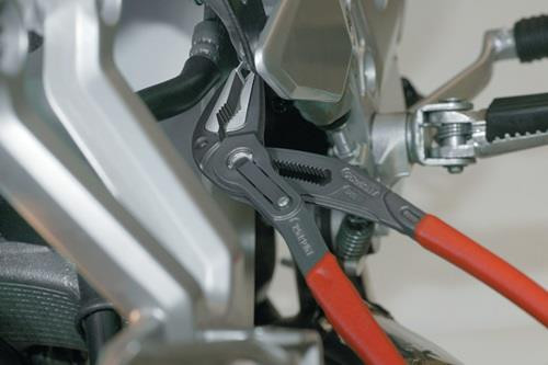 selbstklemmend an Rohren und Muttern · durchgestecktes Gelenk · Einstellung per Knopfdruck direkt am Werkstück · besonders guter Zugang zum Werkstück durch sehr schlanke Bauform im gesamten Kopf- und Gelenkbereich · ideal für Service und Instandhaltung, Gerätereparatur, Fahrzeugbau und Industrie · Klemmschutz · Chrom-Vanadin-Elektrostahl, geschmiedet, mehrstufig ölgehärtet Zange grau atramentiert · Kopf poliert Weitere technische Eigenschaften: · Einstellpositionen: 19