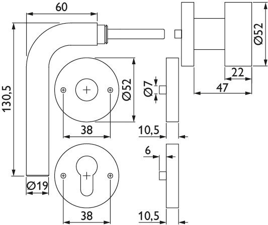 | Material Unterkonstruktion (Griffrosette) | Kunststoff |