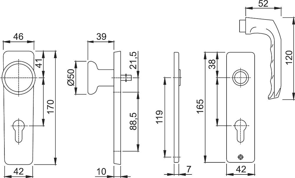 Wechselgarnitur London 6270102 F4 Aluminium bronze 72 mm PZ Knopf 54